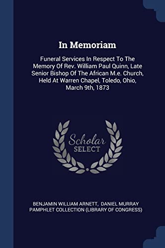 In Memoriam: Funeral Services In Respect To The Memory Of Rev. William Paul Quinn, Late Senior Bishop Of The African M.e. Church, Held At Warren Chapel, Toledo, Ohio, March 9th, 1873 full version