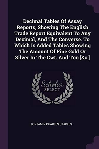 You are about to access our book library "Decimal Tables Of Assay Reports, Showing The English Trade Report Equivalent To Any Decimal, And The Converse. To Which Is Added Tables Showing The ... Fine Gold Or Silver In The Cwt. And Ton [&c.] full version"