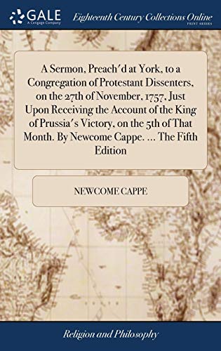 You are about to access our book library "A Sermon, Preach'd at York, to a Congregation of Protestant Dissenters, on the 27th of November, 1757, Just Upon Receiving the Account of the King of ... By Newcome Cappe. ... The Fifth Edition full version"