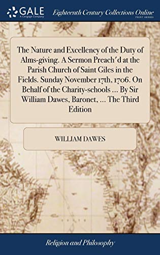 You are about to access our book library "The Nature and Excellency of the Duty of Alms-giving. A Sermon Preach'd at the Parish Church of Saint Giles in the Fields. Sunday November 17th, 1706. ... William Dawes, Baronet, ... The Third Edition full version"