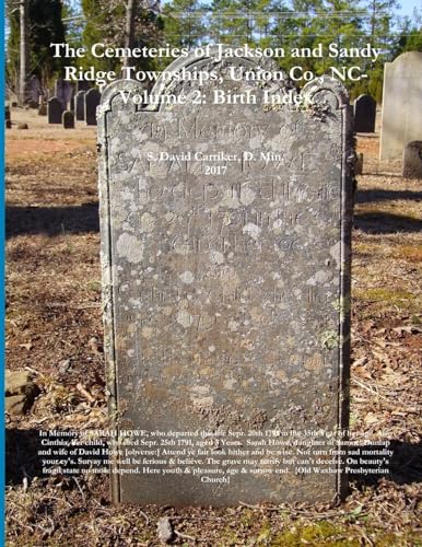 The Cemeteries of Jackson and Sandy Ridge Townships, Union Co., NC: Volume 2- Birthdate Index full version