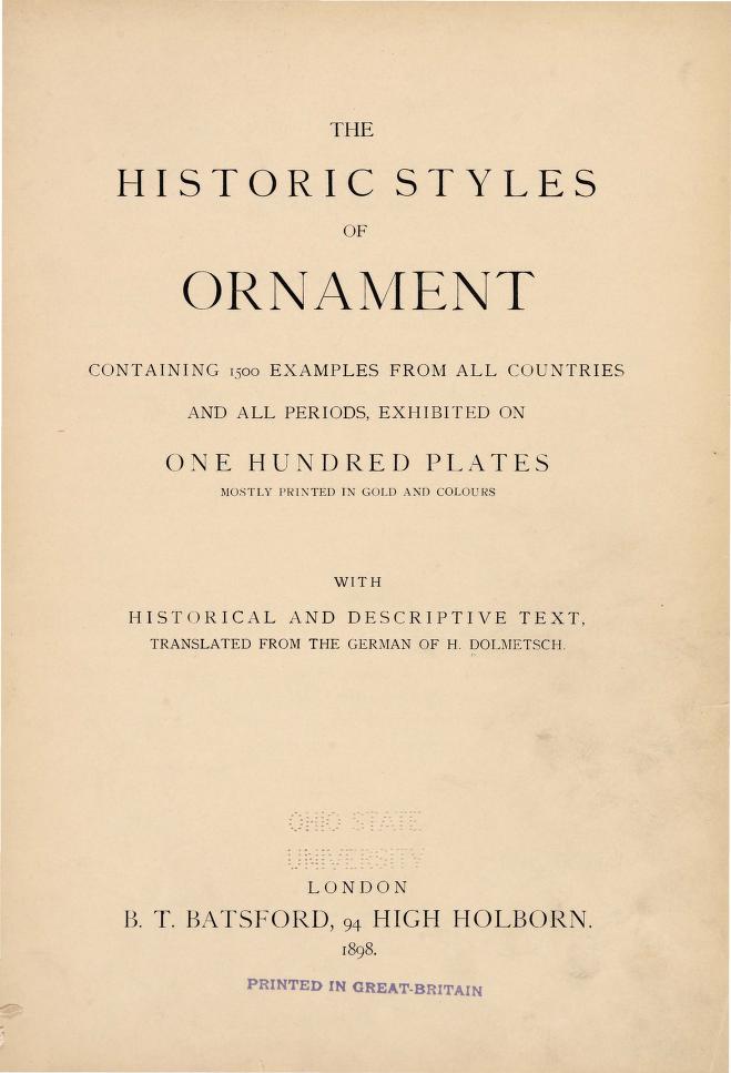 The Historic Styles of Ornament: Containing 1500 Examples from All Countries and All Periods, Exhibited on One Hundred Plates Mostly Printed in Gold ... and Descriptive Text (Classic Reprint) full version