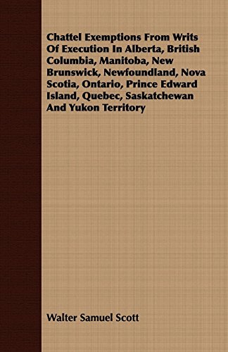 You are about to access our book library "Chattel Exemptions from Writs of Execution in Alberta, British Columbia, Manitoba, New Brunswick, Newfoundland, Nova Scotia, Ontario, Prince Edward Island, Quebec, Saskatchewan and Yukon Territory full version"
