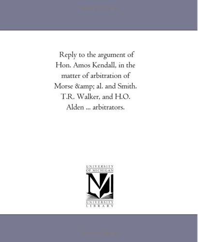 Reply to the argument of Hon. Amos Kendall, in the matter of arbitration of Morse & al. and Smith. T.R. Walker, and H.O. Alden ... arbitrators. full version