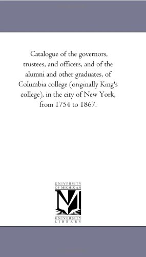 Catalogue of the governors, trustees, and officers, and of the alumni and other graduates, of Columbia college (originally King's college), in the city of New York, from 1754 to 1867. full version