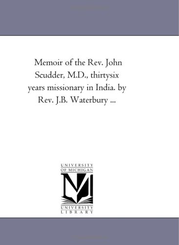 Memoir of the Rev. John Scudder, M.D., thirtysix years missionary in India. by Rev. J.B. Waterbury ... full version