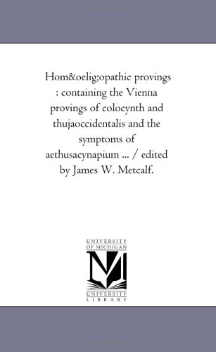 Homoeopathic Provings: Containing the Vienna Provings of Colocynth and Thuja-Occidentalis and the Symptoms of Aethusa-Cynapium ... / Edited by James W. Metcalf. full version