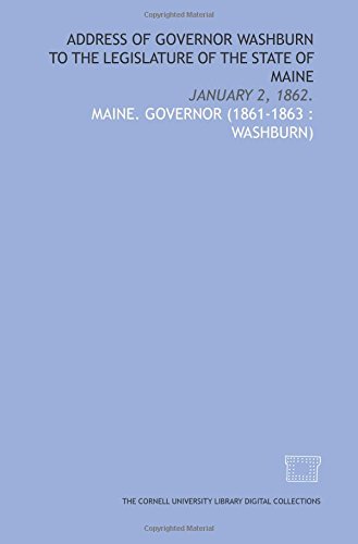 Address of Governor Washburn to the legislature of the state of Maine: January 2, 1862. full version