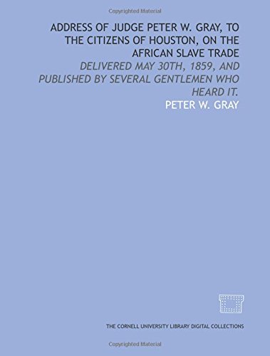 Address of Judge Peter W. Gray, to the citizens of Houston, on the African slave trade: delivered May 30th, 1859, and published by several gentlemen who heard it. full version