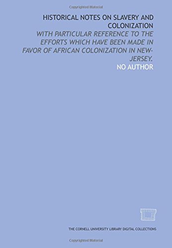 Historical notes on slavery and colonization: with particular reference to the efforts which have been made in favor of African colonization in New-Jersey. full version