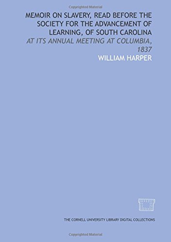 Memoir on slavery, read before the Society for the Advancement of Learning, of South Carolina: at its annual meeting at Columbia, 1837 full version