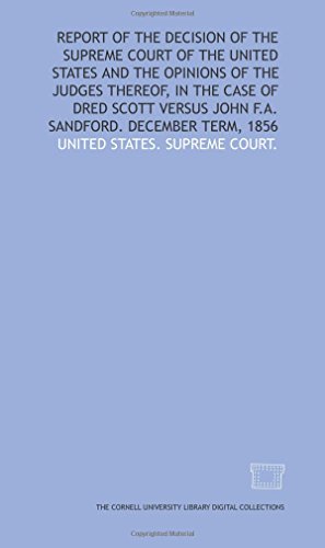Report of the decision of the Supreme Court of the United States and the opinions of the judges thereof, in the case of Dred Scott versus John F.A. Sandford. December term, 1856 full version