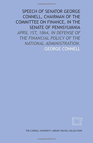 Speech of Senator George Connell, chairman of the Committee on Finance, in the Senate of Pennsylvania: April 1st, 1864, in defense of the financial policy of the national administration. full version