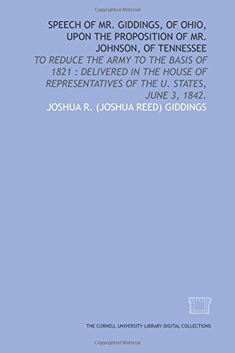 You are about to access our book library "Speech of Mr. Giddings, of Ohio, upon the proposition of Mr. Johnson, of Tennessee: to reduce the army to the basis of 1821 : delivered in the House of Representatives of the U. States, June 3, 1842. full version"