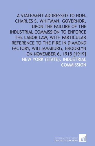 A statement addressed to Hon. Charles S. Whitman, Governor, upon the failure of the Industrial commission to enforce the labor law, with particular ... Brooklyn on November 6, 1915 [1919] full version
