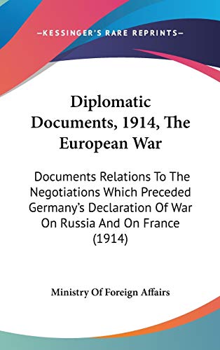 Diplomatic Documents, 1914, The European War: Documents Relations To The Negotiations Which Preceded Germany's Declaration Of War On Russia And On France (1914) full version