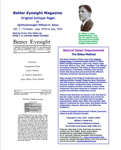 Better Eyesight Magazine - Original Antique Pages By Ophthalmologist William H. Bates - Vol. 1 - 73 Issues-July, 1919 to July, 1925: Natural Vision Improvement full version