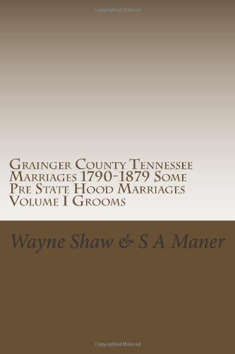 You are about to access our book library "Grainger County Tennessee Marriages 1790-1879 Some Pre State Hood Marriages: Grainger County Tennessee Marriage Bonds; License; Marriages 1790 thru ... By Wayne Shaw Formatted By Sam Maner 2007 full version"