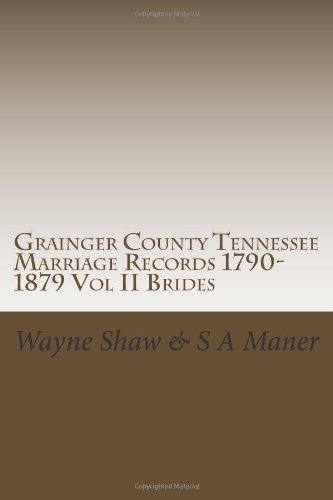 Grainger County Tennessee Marriage Records 1790-1879 Vol II Brides: Grainger Co Marriage Bonds; License; 1790 thru 1879 [inclusive] full version