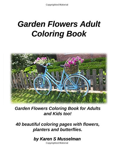 Garden Flowers Adult Coloring Book: 40 Coloring Pages With Flowers, Planters and Butterflies. full version