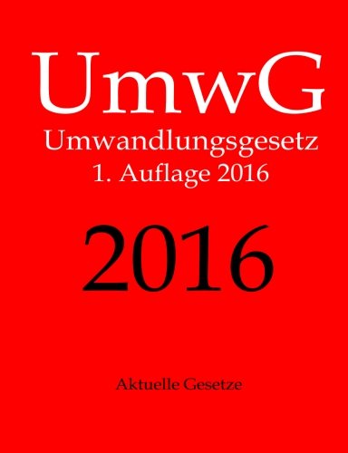 UmwG 2016, Umwandlungsgesetz, Aktuelle Gesetze, 1. Auflage 2016 (German Edition) full version