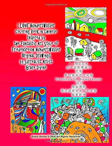 I Love Hundertwasser Coloring Book in Chinese Inspired by the Fantastic Art Style of Friedensreich Hundertwasser Original Drawings by Surrealist Artist Grace Divine full version