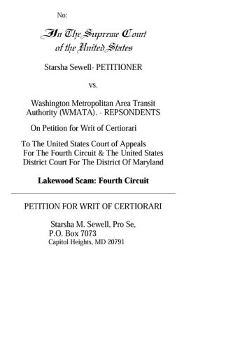 Starsha Sewell vs. WMATA On Petition for Writ of Certiorari: Lakewood Scam: Fourth Circuit full version