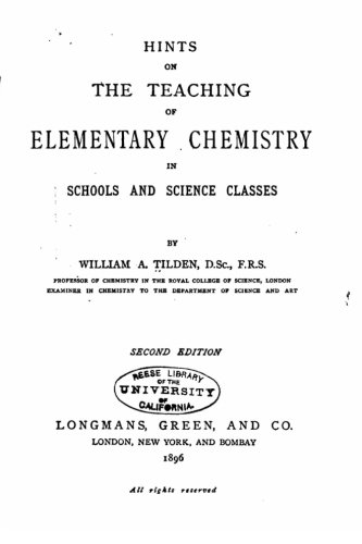 Hints on the Teaching of Elementary Chemistry in Schools and Science Classes full version