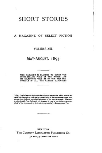 Short Stories, A Magazine of Select Fiction - Vol. XIII full version