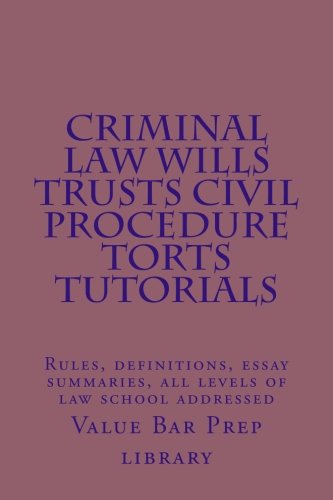 Criminal law Wills Trusts Civil Procedure Torts Tutorials: Rules, definitions, essay summaries, all levels of law school addressed full version