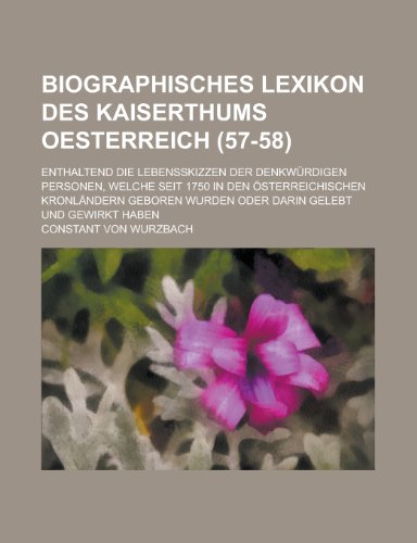 Biographisches Lexikon Des Kaiserthums Oesterreich; Enthaltend Die Lebensskizzen Der Denkwurdigen Personen, Welche Seit 1750 in Den Osterreichischen (57-58) (English and German Edition) full version