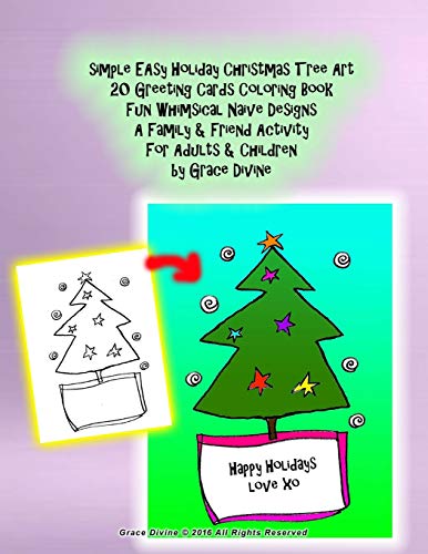 simple EAsy Holiday Christmas Tree Art 20 Greeting Cards Coloring Book Fun Whimsical Naive Designs A Family & Friend Activity For Adults & Children by Grace Divine full version
