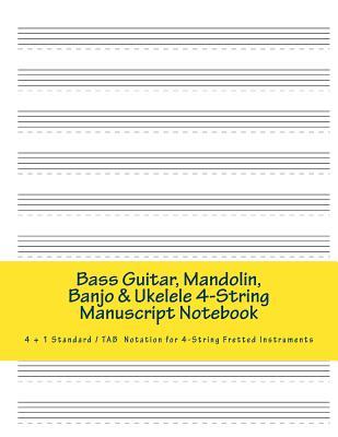Bass Guitar, Mandolin, Banjo & Ukulele 4-String Manuscript Notebook: 4 + 1 Standard/ TAB Notation Book for 4-String Fretted Instruments full version