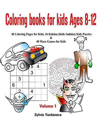 Coloring Books for Kids ages 8-12: 40 Coloring Pages for Kids, 16 Kidoku (Kids Sudoku) Kids Puzzles & 40 Maze Games for Kids full version