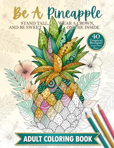 The Be A Pineapple - Stand Tall, Wear A Crown, And Be Sweet On The Inside Adult Coloring Book: Relaxing Tropical Adult Coloring Pages for Mindfulness and Stress Relief full version