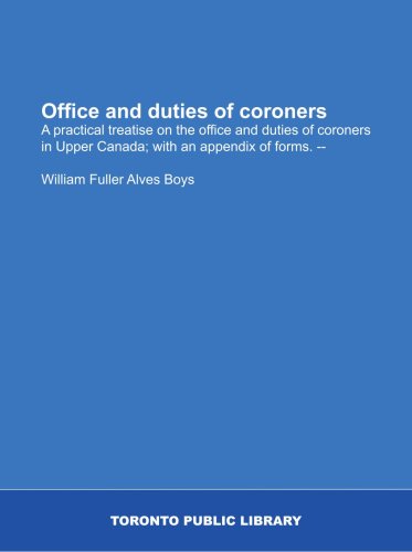 Office and duties of coroners: A practical treatise on the office and duties of coroners in Upper Canada; with an appendix of forms. -- full version