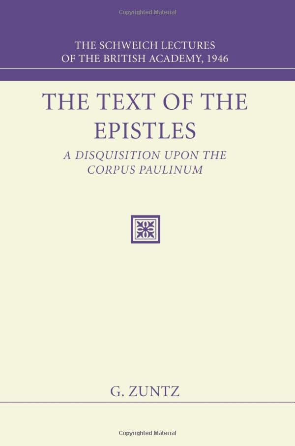 The Text of the Epistles: A Disquisition Upon the Corpus Paulinum: The Schweich Lectures of The British Academy, 1946 full version