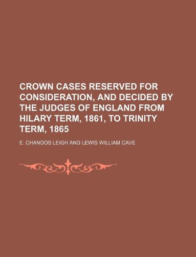 Crown cases reserved for consideration, and decided by the judges of England from Hilary Term, 1861, to Trinity Term, 1865 full version