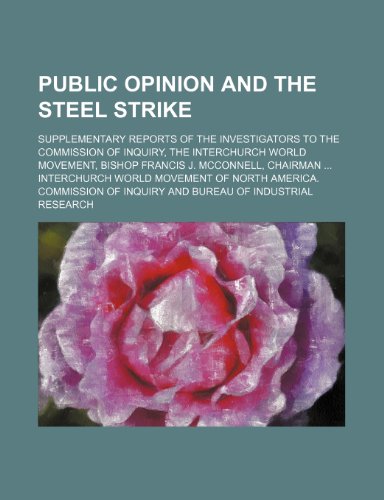 Public opinion and the steel strike; supplementary reports of the investigators to the Commission of Inquiry, the Interchurch World Movement, Bishop Francis J. McConnell, chairman ... full version