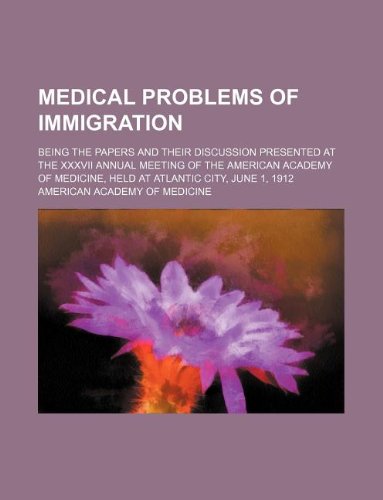 Medical problems of immigration; being the papers and their discussion presented at the XXXVII annual meeting of the American academy of medicine, held at Atlantic City, June 1, 1912 full version