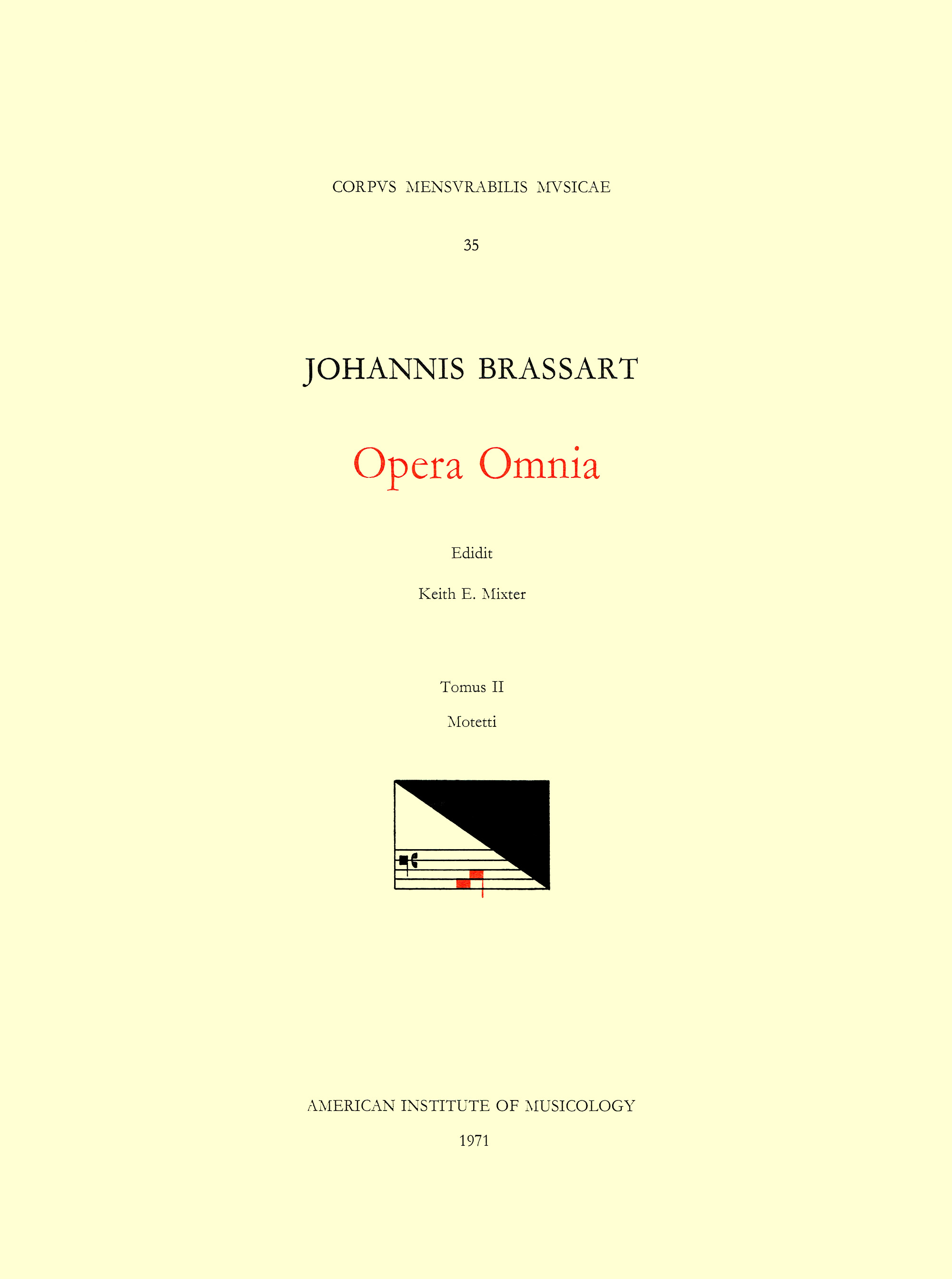 CMM 35 JOHANNES BRASSART (first half of 15th c.), Opera Omnia, edited by Keith E. Mixter in 2 volumes. Vol. II Motetti full version