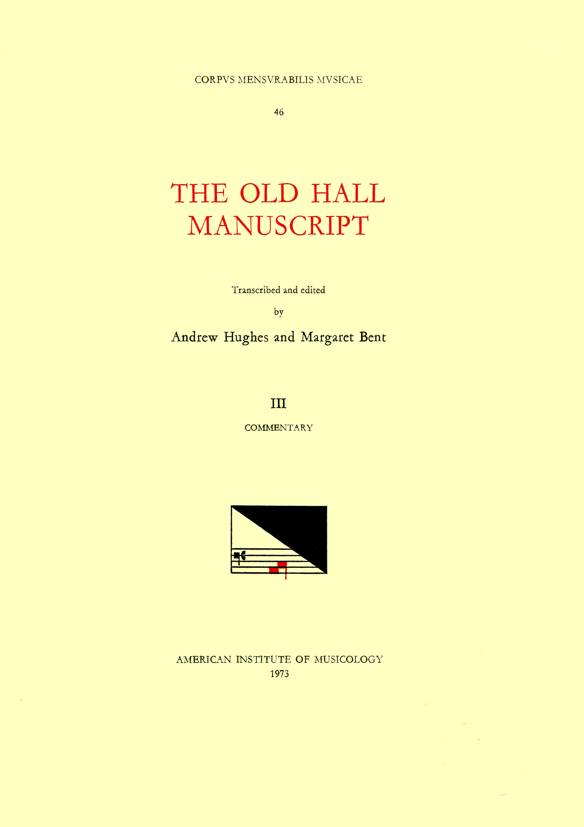 CMM 46 The Old Hall Manuscript (15th c.), edited by Andrew Hughes and Margaret Bent in 3 volumes. Vol. III Commentary full version