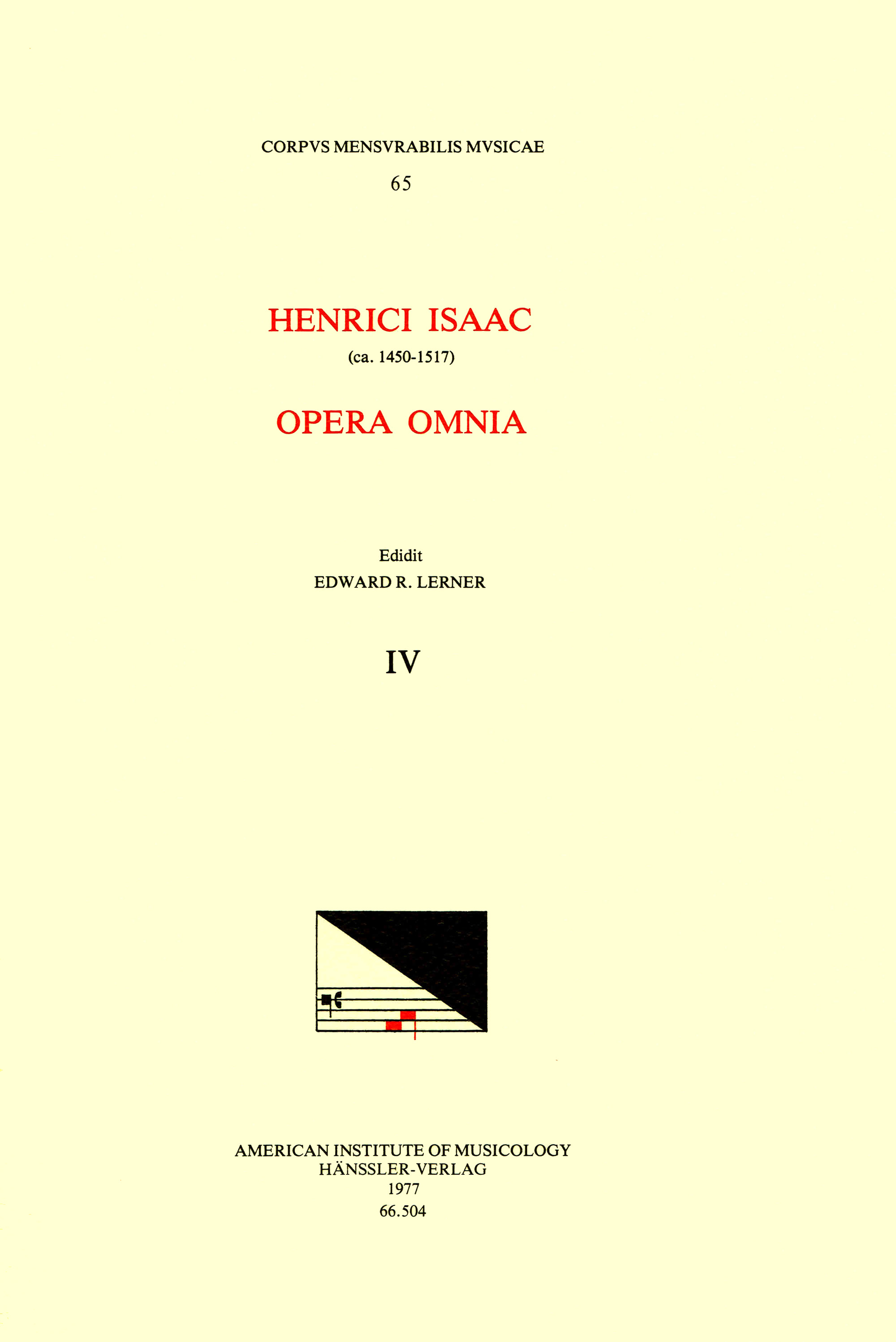 CMM 65 HEINRICH ISAAC (ca. 1450-1517), Opera Omnia, edited by Edward R. Lerner. Vol. IV [Alternatim Masses for four voices] full version