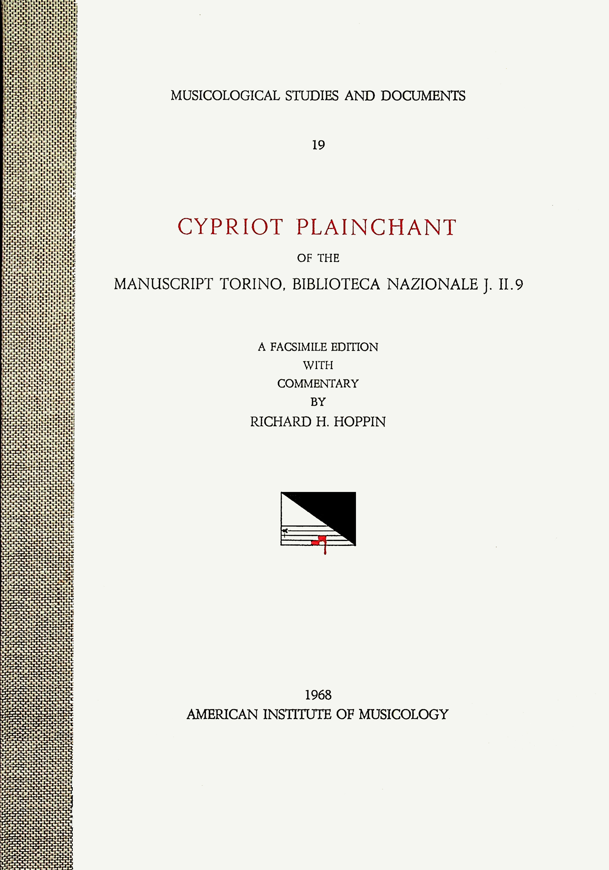MSD 19 Richard H. Hoppin, Cypriot Plainchant of the Manuscript Torino, Biblioteca Nazionale J. II. 9. A Facsimile Edition with Commentary. (See also CMM 21) full version