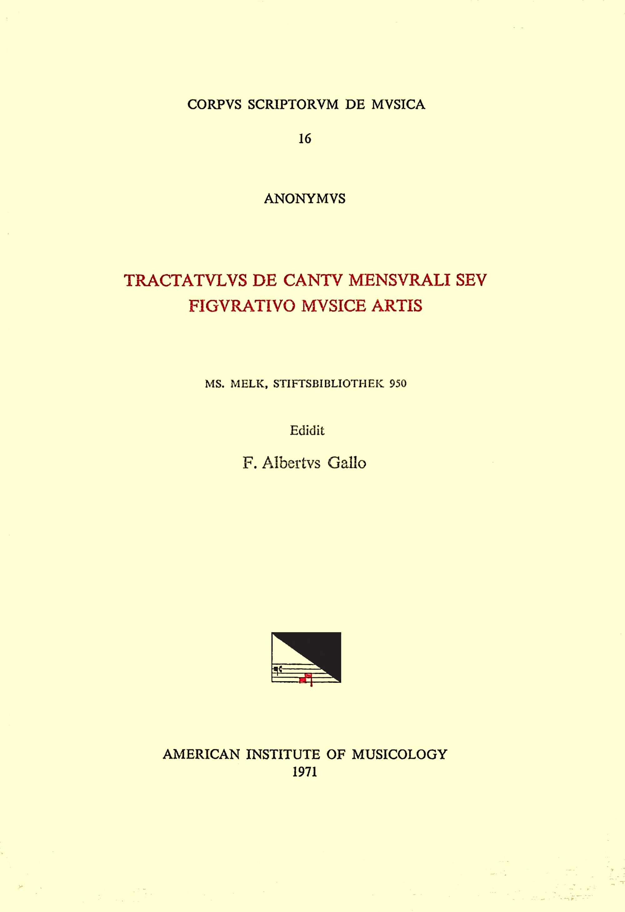 CSM 16 ANONYMOUS, (mid-14th c.), Tractatulus de cantu mensurali seu figurativo musice artis, edited by F. Alberto Gallo full version