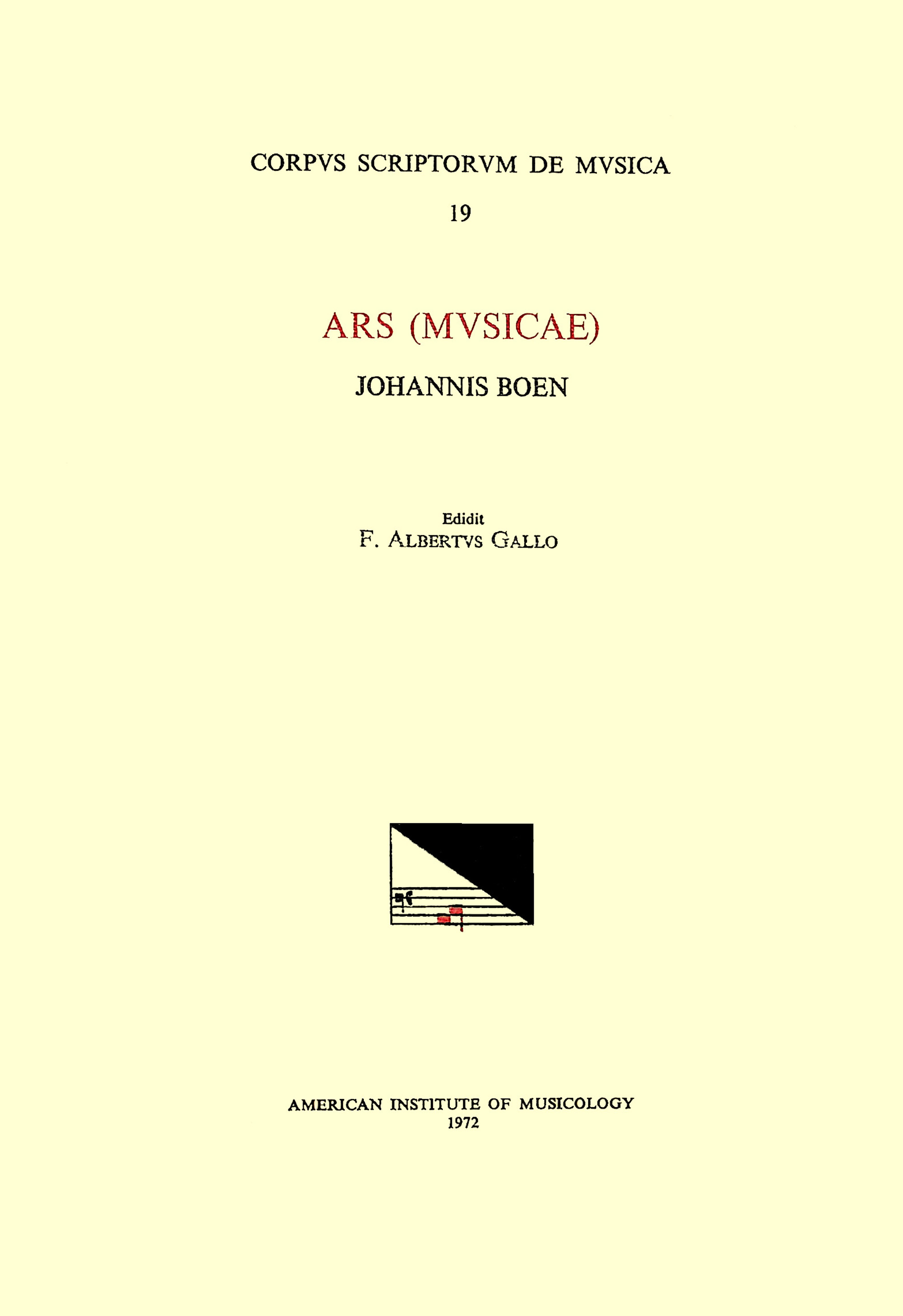 CSM 19 JOHANNES BOEN, Ars (Musicae) (first half of the 14th c.-1367), edited by F. Alberto Gallo full version
