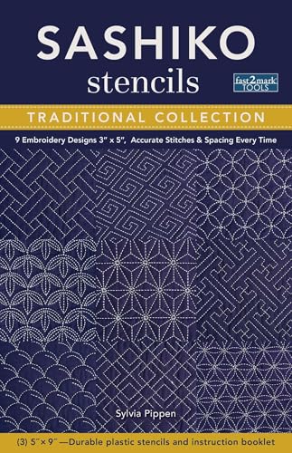 Sashiko Stencils, Traditional Collection: 9 Embroidery Designs 3” x 5”, Accurate Stitches & Spacing Every Time full version