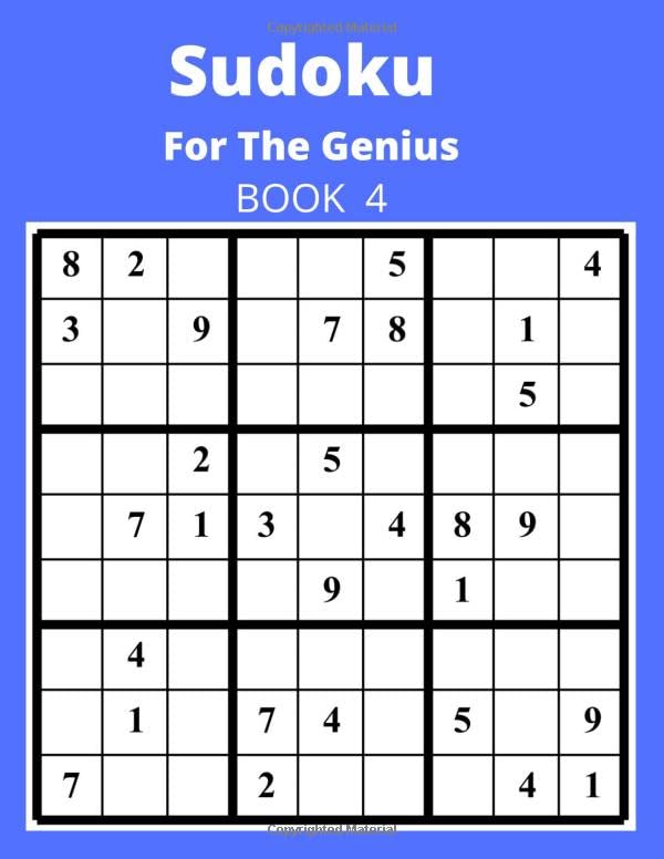 Sudoku For The Genius BOOK 4: For The Sudoku Lover These Are Brand New Extremely Difficult Sudoku Puzzles. Warning Very Difficult full version