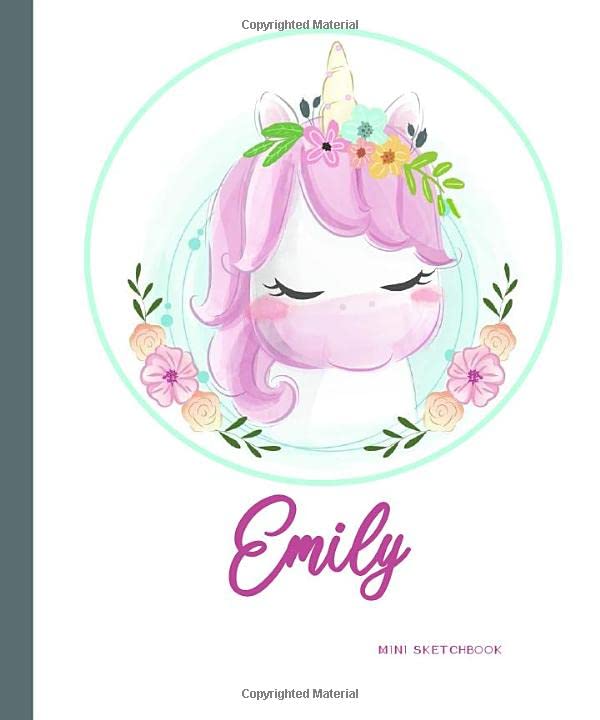 Emily - Mini Sketchbook: Personalized Small Blank Book with Name - 5" x 6" (12.7 cm x 15 cm) pocket-sized Journal, Notebook, Diary for Girls and Women - Cute Unicorn Theme full version