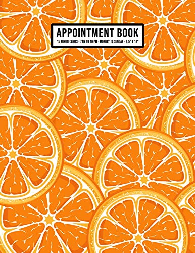 Orange Appointment Book: Undated Hourly Appointment Book | Weekly 7AM - 10PM with 15 Minute Intervals | Large 8.5 x 11 full version